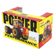 This stunning 1/32 scale “dusty” chase unit replica of the Versatile 145 tractor is part of ERTL's highly detailed Prestige Collection. This replica is constructed with a die-cast metal front and rear body, hood, cab frame and authentic style drawbar, and it includes a die-cast metal “Versatile 145" collector insert. Its engine replicates a V8 diesel engine. Additional features include articulated steering, a 3-point hitch that can be raised and lowered, clear cab windows and a detailed cab interior. According to the manufacturer, this replica is recommended for ages 14+ years, meaning it is for display only and not for play.