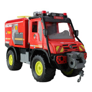 Discover the FDNY Heavy Rescue Fire Truck toy – a compact powerhouse crafted for limitless imaginative play. Packed with features like a roof-mounted water cannon, two high-flying toy drones, a functional winch, and dynamic lights and sounds, this toy transforms rescue missions into thrilling adventures. With swinging axles, free-wheeling action, and doors that open, it offers a realistic play experience that sparks creativity. Unleash the excitement of rescue missions with the FDNY Heavy Rescue Fire Truck toy. Suitable for ages 3 and up.
