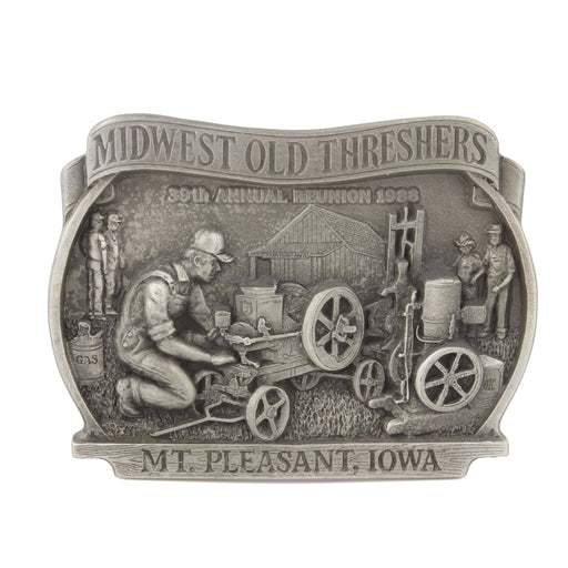 Vintage 1988 Midwest Old Threshers Reunion Belt Buckle Gas engine scene in high detail LE, Serialized Manufactured by The Great American Buckle Co...
