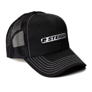 Steiger Stitched Logo Black with White Stitching Mesh Back Hat