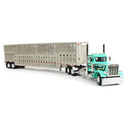 1/64 Peterbilt 359 Day Cab Semi Truck with Wilson Silverstar Livestock Trailer, Teal & Black, DCP by First Gear