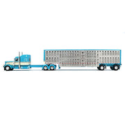 1/64 Turquoise & Cream Peterbilt 389 Semi Truck with Silver Wilson Silverstar Livestock Trailer, DCP by First Gear