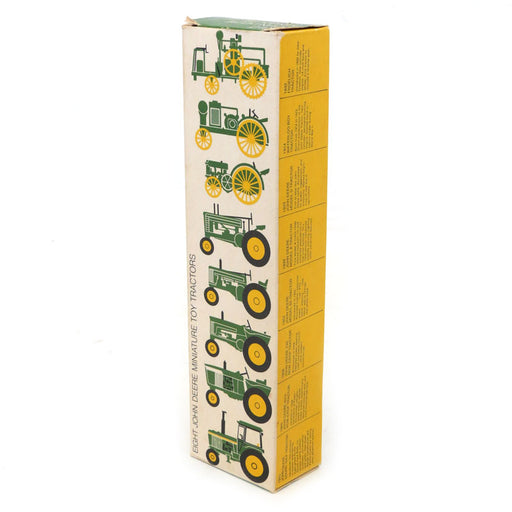 JD 8-piece miniature toy tractors set Tractor set includes: 1973 John Deere Sound-Idea 1960 John Deere 4010 row crop 1958 John Deere 730 row cr...