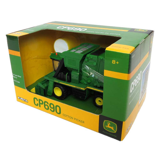 John Deere CP690 cotton picker replica Manufacturer: ERTL Material: Diecast metal with plastic components Scale: 1/64 Approximate dimensions: 6in...