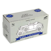 Introducing the 1/25 Ford Model A Roadster Bank in White New Idea, commemorating the 1992 Louisville show. Crafted by Liberty Classics, this die-cast car with rubber tires and plastic components is a limited edition, with only 1500 made. Please note, due to its age, packaging imperfections may occur. With approximate measurements of 6 inches in length, 3 inches in width, and 2.25 inches in height, it's a rare and cherished addition to any collection.