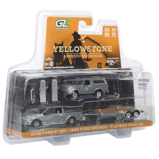 Raw (Unpainted) Chase Unit 2018 Ford F-150 Pickup Truck with 1992 Ford Bronco & Flatbed Trailer Montana Livestock Association decoration from ...