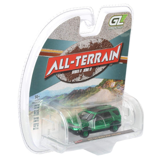 Green Chrome Chase Unit 2022 Ford Bronco Sport Badlands SUV replica Part of All-Terrain Series 17 Manufacturer: GreenLight Collectibles Material: ...