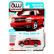 1/64 2005 Chevrolet Silverado SS Single Cab Custom Pickup Truck, Candy Apple Red Metallic, Auto World
