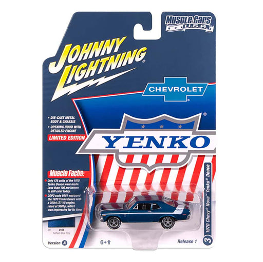 View full details1/64 1970 Yenko Chevrolet Nova, Fathom Blue Poly with White Stripes, Johnny Lightning Muscle Car Series