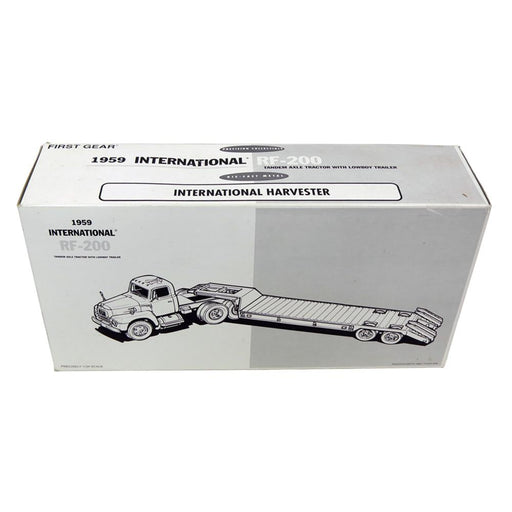 International RF-200 truck replica Tandem axle tractor with lowboy trailer Manufacturer: First Gear Material: Diecast metal Scale: 1/34 Approximat...