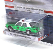 Enhance your collection with the GREEN CHROME SUPER CHASE UNIT 1/64 scale 1983 Ford LTD Crown Victoria, US Customs & Border Patrol, from Greenlight Collectibles' Hot Pursuit Special Edition series. This detailed diecast replica showcases the distinctive US Customs & Border Patrol design.