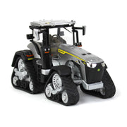 This silver painted chase unit version of the 1/64 John Deere 8RX 410 with Tracks is made by ERTL! It is a special 2023 Farm Show unit that features “2023 Farm Show 1 of 6000” pad print decoration on its cab roof. The tractor is constructed of a die-cast body, front axle and track frames. It has clear cab windows revealing a detailed cab interior. It replicas a unit with 24in front tracks and 30in rear tracks set at an 88in tread width. According to the manufacturer, this replica is recommended for ages 14+ years, meaning it is for display only and not for play. All moving components have limitations - Do not force movement or overextend.