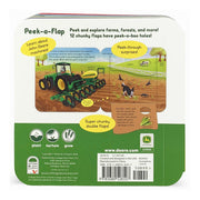 Let's play with John Deere! Each hardworking farm life scene will engage your little one with a pair of lift-a-flaps with peek-a-boo surprises. Talk about the different machines that are a big help on the farm. Inside the flaps, you’ll find fun facts about items in the artwork.
