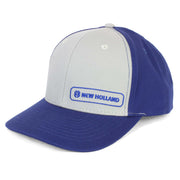 This is a New Holland Cap. It features pristine stitching, color blocked panels, plastic snapback closure and visor edging. It is structured with a low profile and curved visor peak. It also has a light charcoal cap front panel and royal blue visor and backing color scheme with the New Holland logo on the front of the cap. One size fits most adults.