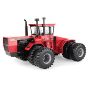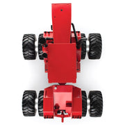 This farm toy replica features classic Case International red decoration, complete with sleek black stripe. It boasts incredible details, including clear cab windows and openable cab doors that reveal a detailed cab interior, an openable hood, engine and grille details, front and rear duals with soft feel tires mounted on diecast metal rims, hydraulic hose details, articulated steering, an accurate rear hitch and more.