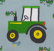 Get your little one ready for fun-filled days with the Infant John Deere Green Tractor Romper Short Sleeve Onesy. Crafted from 100% Cotton Interlock, this short sleeve romper style bodysuit offers ultimate comfort for your baby. It features a front pocket with the iconic John Deere logo and a large embroidered green tractor on baby's bottom. The light blue suit showcases an all-over tractor and farming themed print, adding charm to the outfit. With a 3-button snap enclosure, it's a breeze to dress and change your little farmer. Available in sizes 3-6M, 6-9M, and 9-12M.