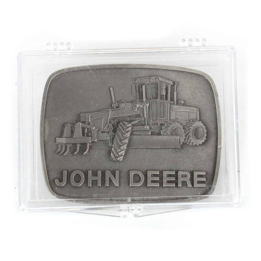 John Deere grader belt buckle Pewter colored finish Made in 1979 Approximate dimensions: 3.0in L x 2.5in W Age Grade: Adult Due to the age of this...
