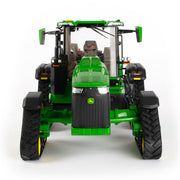 This is a 1/16 John Deere 8RX 370, by ERTL. This piece is part of ERTL's Prestige Collection. This die-cast metal construction replica features tracks on all axles, the hood opens to showcase a detailed engine, the enclosed cab features windows and a detailed interior. The tractor is also furnished with an adjustable three-point hitch.
