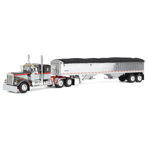 Kenworth W900A Semi Truck replica Paired with a 43ft Wilson Pacesetter Grain Trailer New Aftermarket Parts Tooling from DCP by First Gear! Truck e...