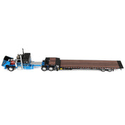 1/64 Peterbilt 389 Semi Truck with Landoll 440B-50CA Traveling Axle Trailer, Blue/Black, DCP by First Gear