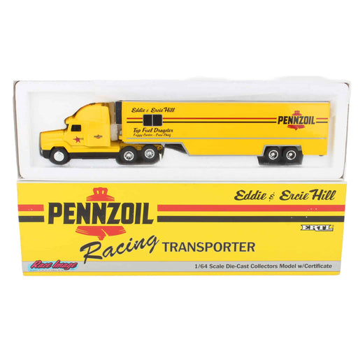 Vintage ERTL freightliner truck replica Pennzoil Texan Racing Team, Eddie & Ercie Hill, Top Fuel Dragster decoration Race Image Collectibles C...