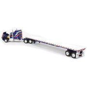This authentic Kenworth W900A withW900A comes paired with a 53' Utility® Trailer. It is a limited edition replica and part of the Liberty Series. It features an opening hood with authentic engine detail, accurately detailed cab interior, poseable front wheels, pivoting fifth-wheel for trailer attachment and a detailed chassis and undercarriage. It includes a certificate of authenticity and custom packaging. This quality replica is decorated with a blue and red paint scheme. This 1/64 scale replica measures approximately 14.5in long x 1.75in wide x 2.25in high. According to the manufacturer, this replica is recommended for ages 14+ years, meaning it is for display only and not for play.