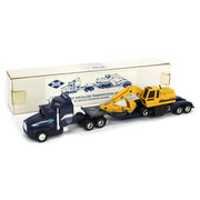 1/64 Blue Midwest Semi with Lowboy Trailer and John Deere 690C Excavator