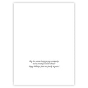 - Message inside reads, "May this season bring you a joy and prosperity and a to a wonderful season ahead! Happy Holidays from our family to yours."
