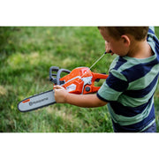 Introducing the Husqvarna 550XP Pro Toy Replica Chainsaw, a thrilling recreation of the iconic Husqvarna 550XP Pro Chainsaw. Resembling the real deal, this toy chainsaw fuels imaginative outdoor play for kids aged 3 and up. Hear the authentic roar of the engine with its realistic chainsaw sounds and watch as the blinking red indicator adds to the excitement. Featuring a recoil starter and an On/Off switch for added realism, this replica even revs its engine and rotates its chain with each trigger pull. Perfect for outdoor adventures, it promises endless thrills and imaginative exploration in the backyard or at the park.