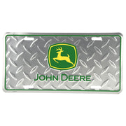John Deere fans: show your love for John Deere everywhere you go with this rugged John Deere License Plate! It features the yellow and green John Deere logo over a rugged chrome metal diamond plate background. Its four pre-cut mounting slots makes this license plate super easy to install. This John Deere license plate has a standard size 12 inches by 6 inches, making it the perfect fit for most every vehicle.