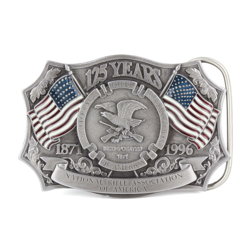 View full detailsVintage NRA 125 Years 1871-1996 Silver Belt Buckle with American Flags