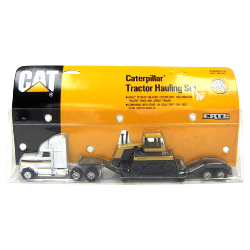 Caterpillar toy tractor hauling set Comes with tracked Cat Challenger 65, Caterpillar semi truck and lowboy trailer Manufacturer: ERTL Material: ...