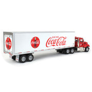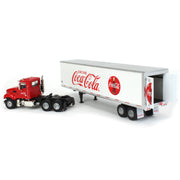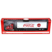 The 1/50 Coca-Cola Truck with 53ft Trailer is a realistic model designed for collectors! It features a rear hitch with a detachable trailer, free-rolling wheels, and a detailed cab interior. The trailer doors can be opened, adding to its authenticity. This collectible is a great addition to any Coca-Cola memorabilia collection. According to the manufacturer, this item is recommended for ages 14+ years, meaning it is for display only and not for play.