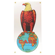 This is a “Case Old Abe Vinyl Banner.” The iconic vertical Case logo is printed on heavyweight