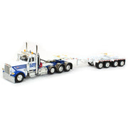 1/64 White/Blue Peterbilt 389 w/ ERMC Hydra-Steer Trailer & Bridge Beam Load, DCP by First Gear