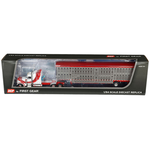 View full details1/64 Peterbilt 379 Red/White with 63in Mid Roof Sleeper Cab with Wilson Silver Star Livestock Trailer, DCP by First Gear