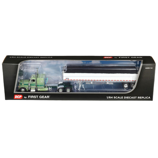 View full details1/64 Peterbilt 379 2 Tone Green with 48in Flat Top Sleeper Cab with Tandem Axle High Side Wilson Pacesetter Trailer, DCP by First Gear