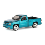 1/64 2005 Chevrolet Silverado SS Single Cab Custom Pickup Truck, Teal Turquoise Metallic, Auto World
