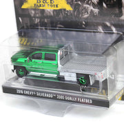 Green Chrome Chase Unit ~ 1/64 2016 Chevrolet Silverado 3500 Flatbed Dually, Blue, B&B Toys Exclusive