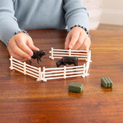 - Comes with 10 pieces, including a Case IH tractor, four (4) fence pieces, two (2) cows and two (2) hay bales!
