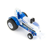 Made by ERTL, this 1/64 New Holland "World Class" Pulling Tractor showcases a "World Class" blue color scheme and is made of die-cast metal. This pulling tractor features a roll bar and oversized tires. According to the manufacturer, this item is recommended for ages 3+, making it great for collecting or for play! Chase Unit.