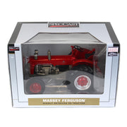 Made by Spec Cast, this 1/16 scale Massey Ferguson 98 diesel tractor features wide front wheels.  The Massey Ferguson tractor features high detail, pin hitch, and an red color scheme. The tractor is made from diecast metal body with some plastic parts and rubber wheels. Per the manufacturer, it has a recommended age of 14+ years and is not recommended for play.