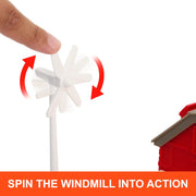• Kid-activated features and sounds, like a noise-making rooster, a farmer working in the field and animal feeding trough