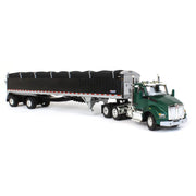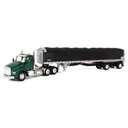 1/64 Green Kenworth T880 with Black Wilson Patriot Spread-Axle Belt Trailer, DCP by First Gear