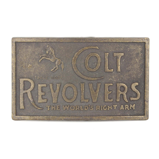 Vintage Belt Buckle Colt Revolvers: The World's Right Arm decoration Material: Brass/Metal Approximate dimensions: 3.75in L x 2.25in The perfect w...