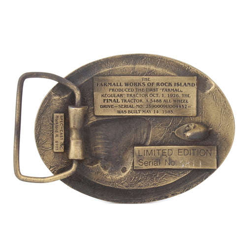 Vintage Farmall Works Final Tractor Belt Buckle 1985, Limited edition, serialized Manufacture: SpecCast Material: Durable metal Approximate dimens...