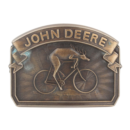 Vintage Belt Buckle John Deeer Bicycling Deer Buckle Limited edition, serialized Manufactured: 1988, John Deere Material: Metal Approximate dimens...