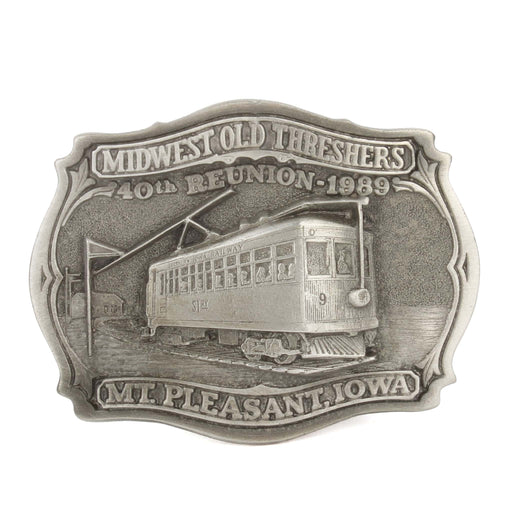 View full detailsVintage 1989 Midwest Old Threshers 40th Reunion Mt Pleasant Iowa Railways Pewter LE Belt Buckle