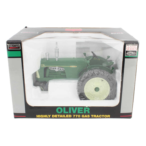 Oliver 770 Gas Tractor replica High Detail Narrow Front end Manufacturer: SpecCast Material: Diecast metal & rims with rubber tires Scale: 1/...