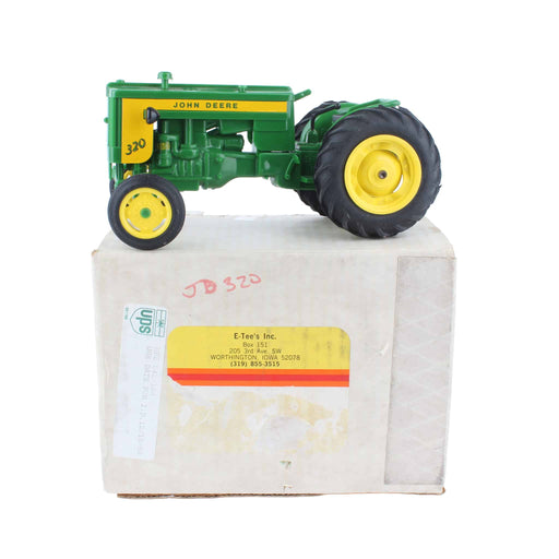 John Deere 320 tractor replica Produced for 1989 Plow City Manufacturer: E-Tees Inc Material: Plastic with rubber tires Scale: 1/16 Approximate di...